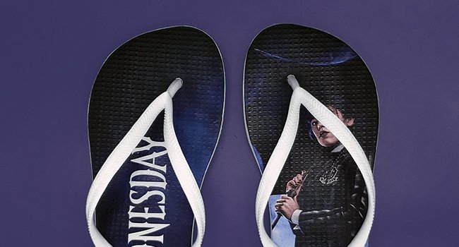 Fazemos chinelos para marcas, com etiquetas emborrachadas em alto relevo nas tiras.